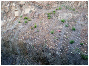 1、經(jīng)濟型:采用主動(dòng)防護網(wǎng)產(chǎn)品搭配綠色植被防護,這樣主動(dòng)防護網(wǎng)可與植被根系的固土作用結為一體,從而抑制坡面破壞和水土流失,反過(guò)來(lái)又保護了地貌和坡面植被,實(shí)現最佳的邊坡防護和環(huán)境保護目的。這個(gè)搭配方案可用在邊坡地形不是很高且有綠色植被生長(cháng)條件的邊坡使用。