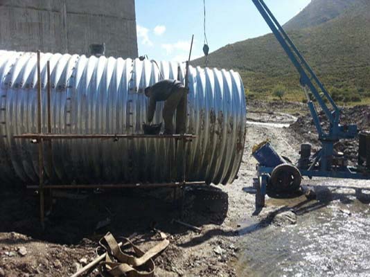在某些運輸不太方便的地方可以直接在涵錒長(cháng)度方向進(jìn)行鋼波紋涵管的拼裝。