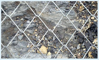 坡面加固,抑制崩塌和風(fēng)化剝落,溜塌的發(fā)生,限制局部或少量落石運動(dòng)范圍,有小塊落石或上質(zhì)邊坡時(shí)選用。能滿(mǎn)足可達100年的防腐壽命要求,但其加固能力僅為70%-80%左右,不適于體積大于1m3的大塊孤危石。